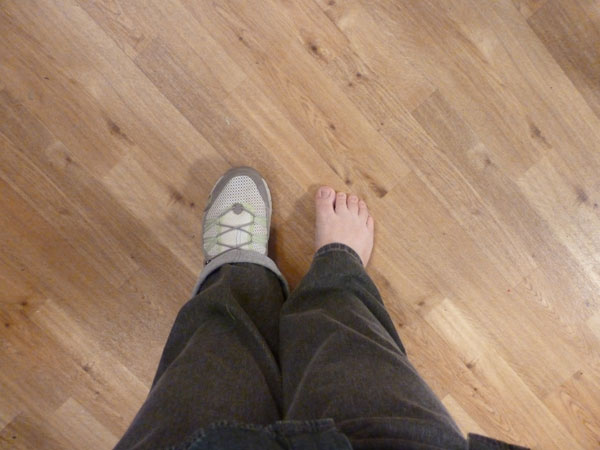 Speaking of sewing, I thought it would be fun to take a picture of my feet – I sew with a bare foot, so shot both episodes with one shoe on and one shoe off!