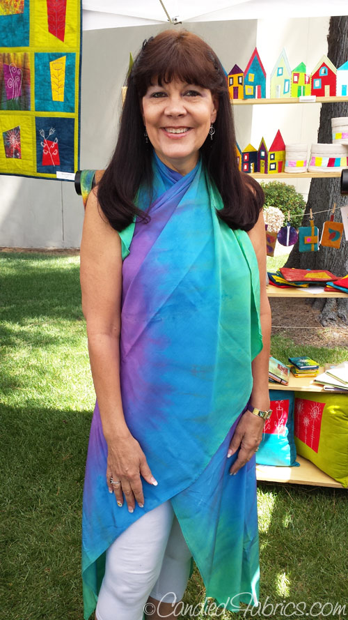 Also popular this show were my capes – I had a lot of fun showing folks how to tie them all sorts of ways, here’s another happy customer, who happens to work with Adele in her booth, Vicki loved this and wore it all Sunday!