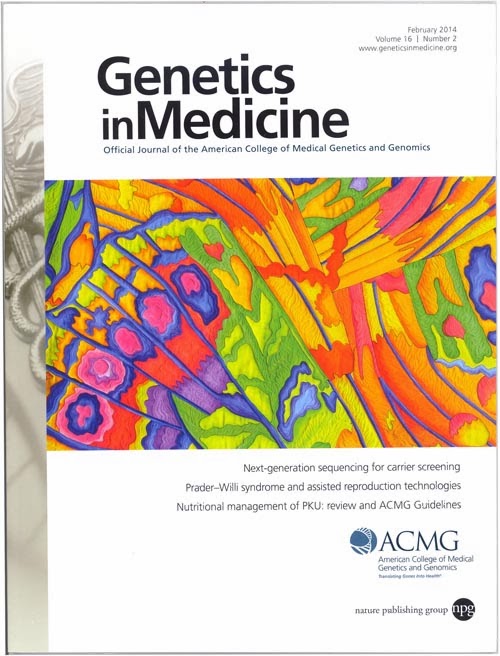 was featured on the cover of……. the February issue of Genetics in Medicine, the magazine of the American College of Medical Genetics and Genomics. How COOL is THAT???