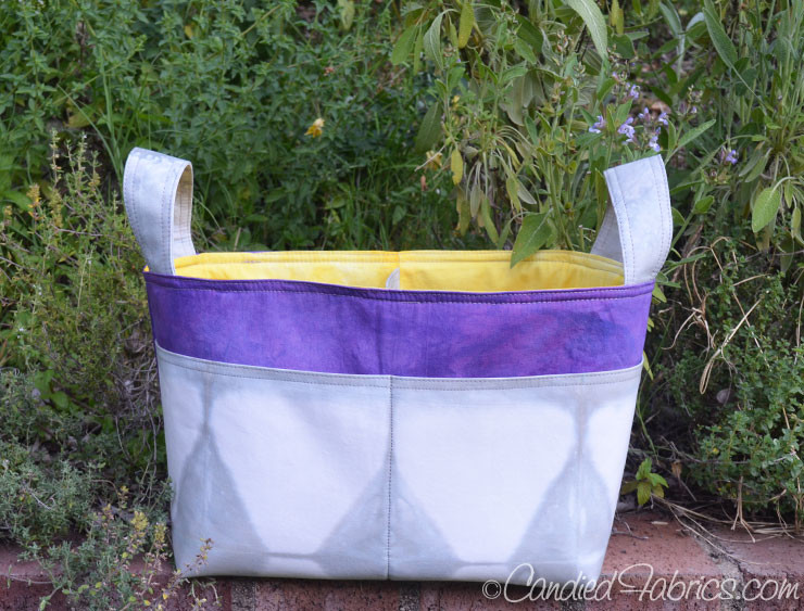 I’ve been making a couple of baby quilts for my cousin in a purple, grey and gold palette she and her husband chose. Once I had the tops pieced, I made a divided basket, pattern by Anna Graham of Noodlehead, it is PERFECT for holding diapers in one half, all the other supplies in the other. They can keep it on the changing table, or grab it and carry everything to a different room when the baby needs changing!