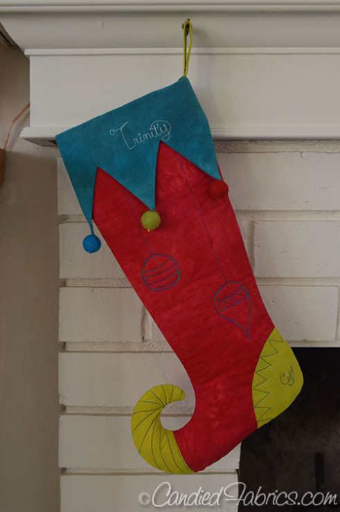 A couple of weeks ago I was contacted by a Mom who needed a stocking for her new baby Trinity. She loved my red jester stocking, asking only that I use several colors of wool felt balls instead of a single color: