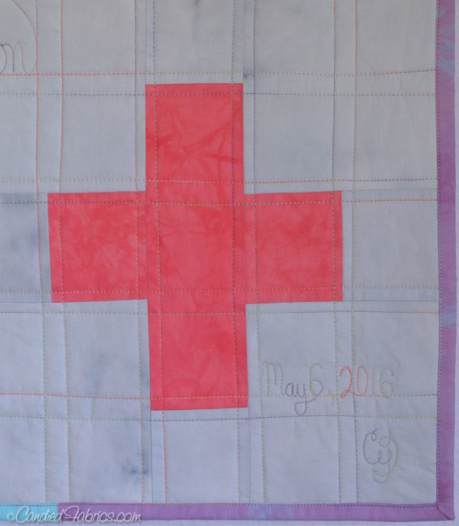 Now that this quilt is received, (and loved!) by Annalise and her parents, I can show it off here! (The toughest part of making surprises for people who follow you on social media is not sharing snapshots of it along the way!)  To read more about the process, and why I’m making this quilt, please read yesterday’s post, but the Cliff’s notes of the story is that Liam’s trombone professor Jeremy Wilson at Vanderbilt is awesome, and he and his wife Kristi just had a baby girl named Annalise, and she needed a quilt! 🙂
